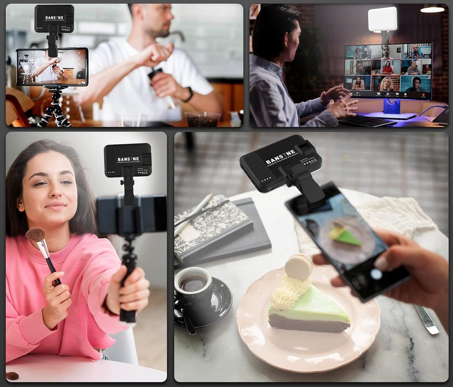 Luz de teléfono para selfie de bolsillo BANSINE solo pesa 3.22 onzas y tiene un grosor de 2.835 in que cabe en un pequeño bolso, mochila o bolsillo, y se puede llevar. La batería es recargable, USB integrada de 2200 mAh puede ofrecer de 2 a 15 horas de iluminación continua.